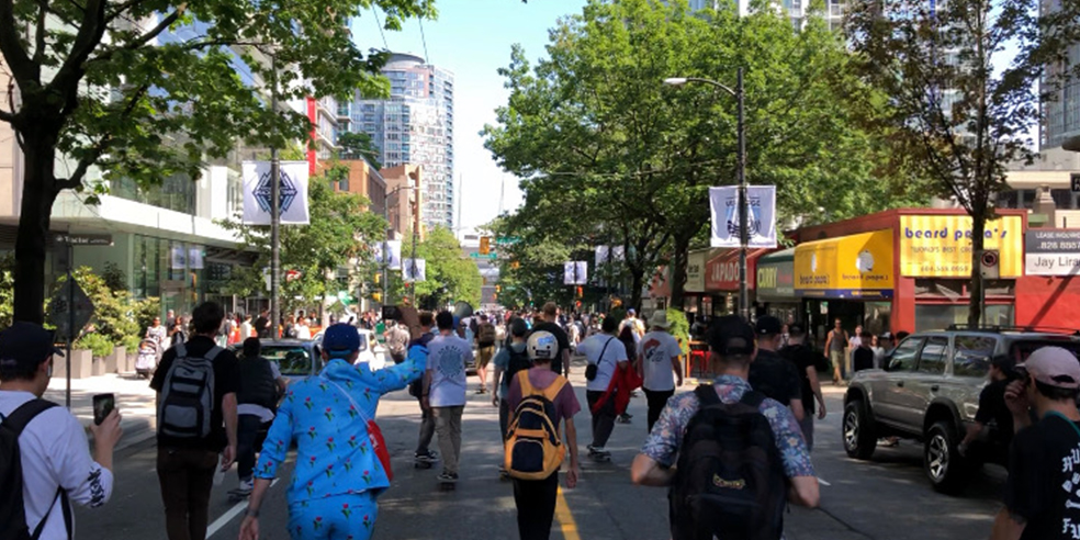 6月21日に”Go Skateboarding Day”のイベントがバンクーバーであると教えてもらい、友人達とレンタカーで行ってきました。日本では考えられないですが、公道を数千人規模のスケーターがプッシュで移動して各スポットで遊んでまた移動する、そんなイベントです。