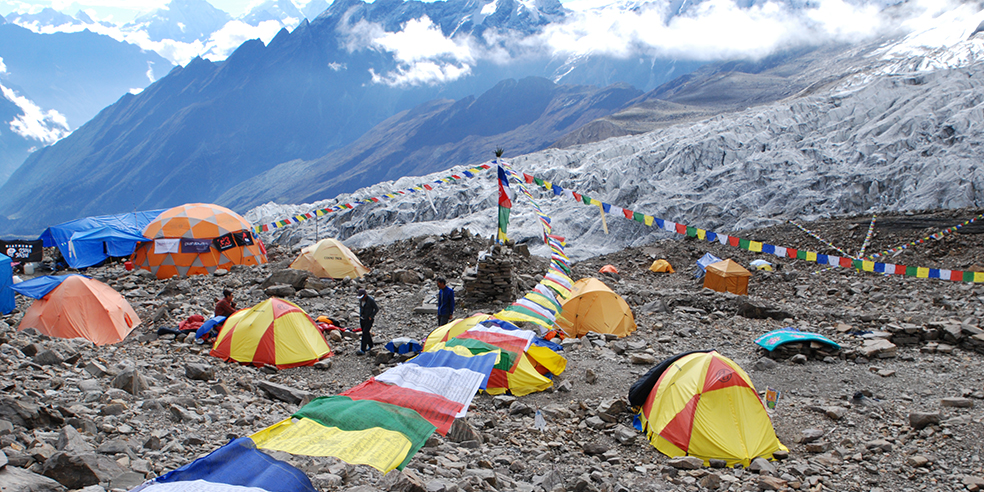 高所登山用に身体が仕上がった頃、ラマ教によるプジャ(安全祈願儀式)を行ないました。世界中から集まった遠征隊、プジャを行わない隊はありません。我々のBCにも立派な祭壇を作り、四方にタルチョ(五色旗)を張り巡らせます。