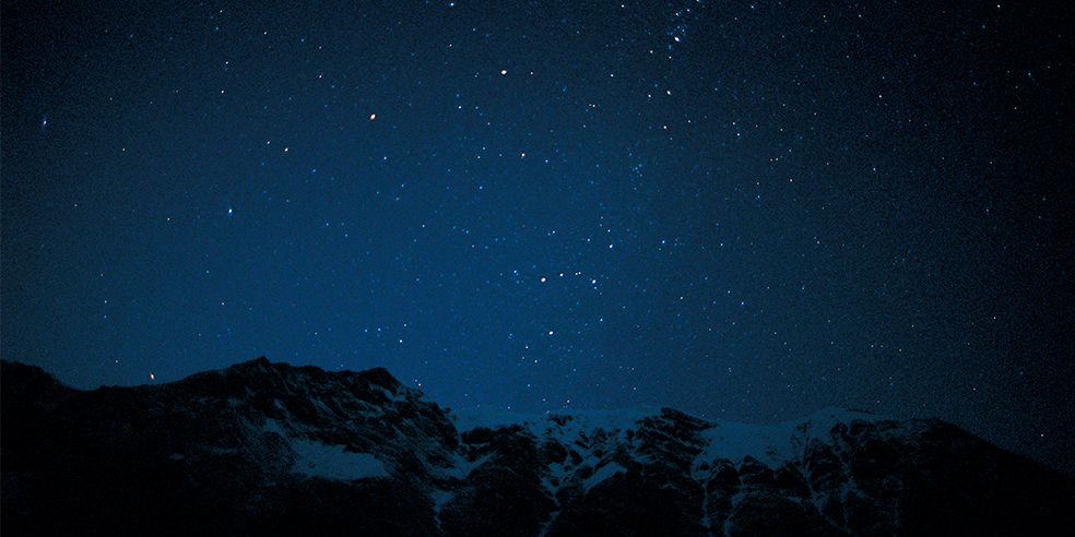 テントの内壁は、呼気による夜露が凍って真っ白です。狭いテント内で作業すると、霜が雪のように落ちるため、カメラレンズに降りかからないよう気をつけます。履くブーツも冷たくなっていますが、苦痛と感じるのはここまで。テントから外に出れば、光害の影響を全く受けない最高の夜空。標高を考えればヒマラヤは地球上で最も美しい星空が眺められる場所です。ヒマラヤを前景とした豪華なパノラマ風景に、普段見慣れた星座たちも、情緒的に輝いて見えます。