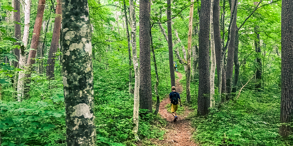 2日目の制限時間は初日より1時間短い4時間。同得点の場合、タイムの早いチームの順位が上になることもあり、前日の失敗を教訓に、目標の300点を得た時点でゴールへ向かうことに。終盤は車道を避け、ブナやダケカンバのトレイルへ。瑞々しい森の小径に、足取りが軽くなるのを感じます。