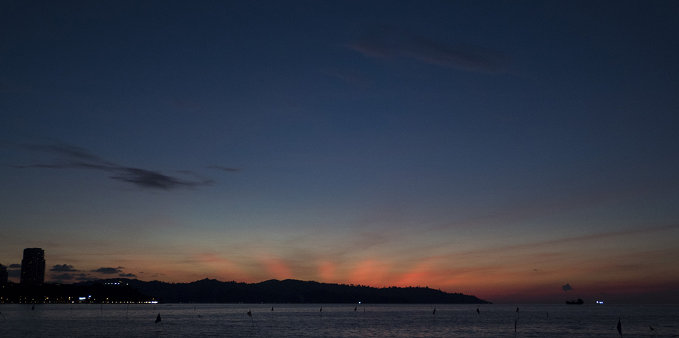 28_OM031010コタキナバルの名物のひとつ、サンセット。海岸線を散歩しながら夕日を見るのはなかなかのもの。マーケットの賑わいもぜひとも体験していただきたい。ツーリスト向けのお土産屋さんはもちろん、現地の人たち向けの食材やレストランを巡るのも面白いですよ。