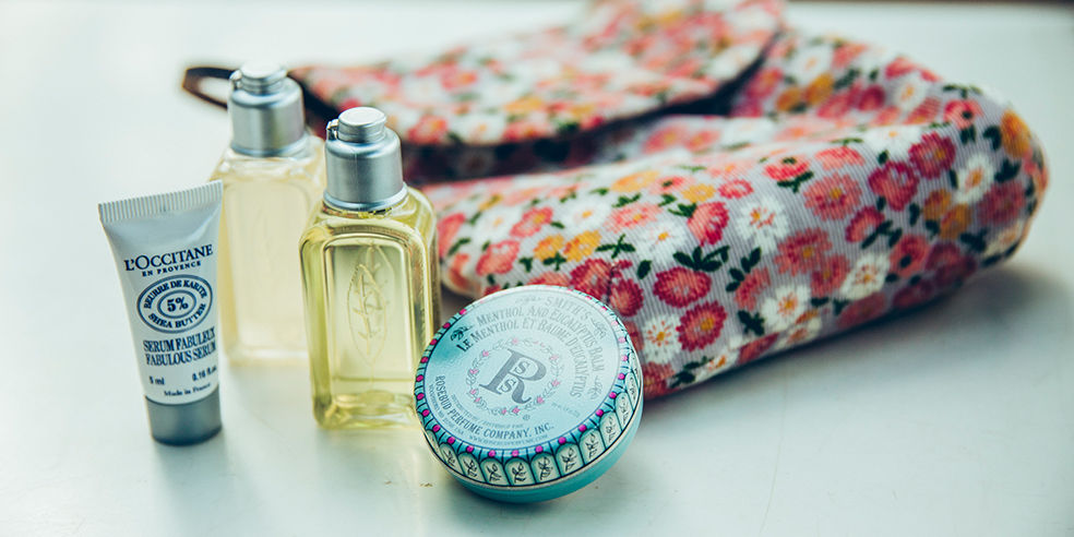 山本さんにとってもう一つ欠かせないのが、いつもより上質なアメニティ。「宿泊先によっては基本的なアメニティが揃っていないこともあって、もともと持ち歩いていたのですが、それを普段使っているものよりもちょっとよいものに変えました。旅という非日常って実は知らず知らずに緊張しているもの。入浴時にお気に入りの香りで満たされると、気分が安らぎうまい具合にリセットできるんです」