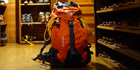 - 今回の山行で活躍してくれたのが、〈alpiniste 45+10〉。アルパインクライミングでの使用に特化した、フラッグシップモデルです。ハーネスを装着した際の腰回りのクリアランスや、ピッケルなどのアイス&スノーギアを収納できるストレージなど、クライミング時に活躍する機能をふんだんに盛り込んでいます。