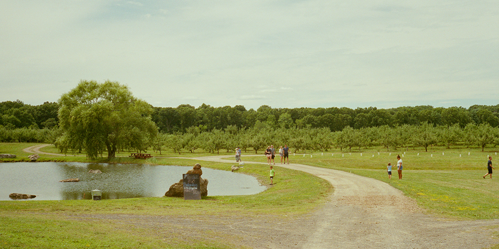 これまでめぐってきて感じたのはニューヨーク州が農業の盛んな州であるということ。郊外にはニューヨーク市から感じるイメージとは対極にあるような景色が広がっている。さまざまな野菜、ヨーグルトやチーズといった乳製品、メープルシロップなど多くの農産品が作られているが、なかでも名産品として名高いのがりんごだ。ニューパルツ近くにあるりんご園は、レストランが併設されていて、食事後に思い思いに散策する人びとの姿が印象的だった。