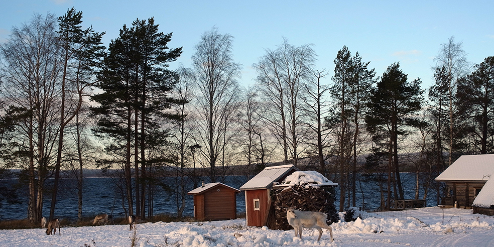 スカンジナビア半島の北部に位置するラップランドへ。北極圏にほど近いロヴァニエミから旅はリ・スタート。早朝、投宿していたコテージの外に出るとトナカイが朝ゴハンを食べていた。宿の女主人いわく、トナカイは苔や藁などを食すらしい。