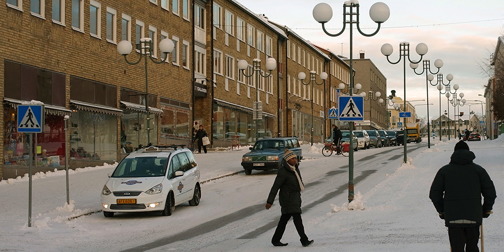 炭鉱で栄えた街キールナの中心地。オーロラ観測率が高いことで知られ、近郊にはアイスホテルで有名なユッカスヤルビも。荷物を運ぶカートやベビーカーの車輪は、雪上を滑りやすいようにソリになっていた。少年たちはスケートボードをスノーボードのようにして遊んでいたのも印象的。